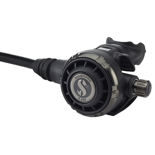 The G260 Tactical is a new Balanced Adjustable Second Stage featuring Metal Components for Excellent Cold Water Resistance (Inlet Tube, Orifice, Inhalation Control Knob and Hose Connector). This Second Stage is not for everyone. Set yourself apart with the G260 Tactical Edition. The High Balanced Performance of the G260 is housed in a Stealth, Precision Molded, Rugged, Carbon Fiber and Techno-Polymer Case, with a Dark Anodized Aluminum Ring. Its High Performance makes it a choice for all Demanding Divers and it will be the natural choice for G250 fans. The new Left-Right Hose Attachment Option makes it ideally suited for Tech Diving Configurations. The G260 Air Balanced Flow Valve is made from Durable Corrosion Resistant Chrome Plated Brass. The Regulator has a Stealth Design Diver Adjustable Inhalation Effort Knob that allows Personalized Breathing Control and a Venturi Initiated Vacuum Assist (VIVA) to prevents Free Flow in Cold Water or when used as an Octopus.