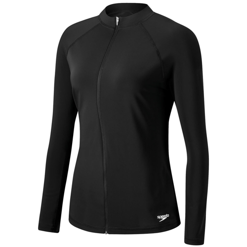 The XTRA-Life Lycra Fiber - After 200-hours of continuous exposure in the pool, this durable fabric is still going strong. Engineered to last 5-10 times longer than ordinary Spandex, it resists bagging, sagging and the effects of suntan lotion, skin oils and chlorine, which means you can count on a great fitting rash guard, swim after swim. This Speedo product has an easy on and off front zipper long sleeve rash guard design. Rash guard is available in multiple sizes, and is black in color.