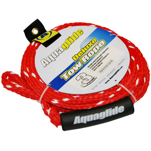Enjoy a lot of great towing fun with this AquaGlide 3 Person Deluxe Tow Rope. This tube tow rope is designed to be used with tubes that can carry up to 3 riders, allowing you to enjoy water time with your friends. It is made of high quality braided polyethylene material. This rope's diameter ensures its reliability while towing you around the water so that you stay safely connected to the boat. Its 60' (18.3m) length gives a lot of movement for all towing activities. It has 2 tow eye loops for easy and strong hook-ups. Its load strength is 3,350 lbs. (1,520 kg), which makes it sturdy enough to get the job done properly. This rope weighs 2.35 lbs. (1.5 kg) with packaging, so it is lightweight and portable to take it anywhere. Let the fun begin with this AquaGlide 3 Person Deluxe Tow Rope!