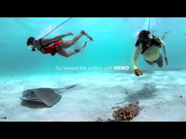Nemo is a tankless diving system, perfect for shallow-water diving. It features a rechargeable lithium-ion battery that allows a single diver to dive up to 10 feet for 60-90 minutes or more.