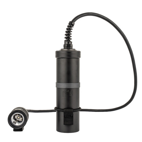 Delivering a powerful 2400 lumens dive light output through a tightly concentrated 4 degree beam, this canister dive light system is built for divers who require focused, long range illumination. The compact light head maintains a small profile on the back of the hand, reducing bulk during use. A head mounted piezo push button ensures smooth operation without external moving parts, supporting reliability in demanding underwater conditions. With up to 3 times the burn time compared to the handheld configuration, this primary dive light system extends runtime for longer technical dives.