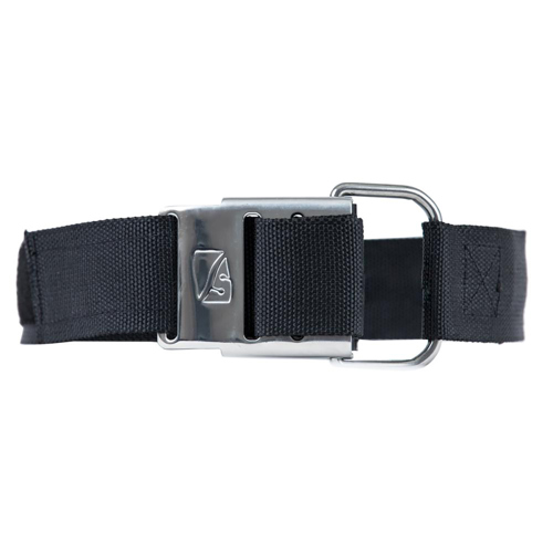 Designed for secure cylinder attachment in compact setups, this short cam strap with roller buckle features 2" nylon webbing paired with a marine grade stainless steel buckle for dependable hold. The 28" webbing length is suited for cylinders 6" in diameter or smaller, while the roller buckle design supports smooth tightening and secure locking during installation. Manufactured in the USA, the strap reflects durable construction standards intended for consistent dive use.