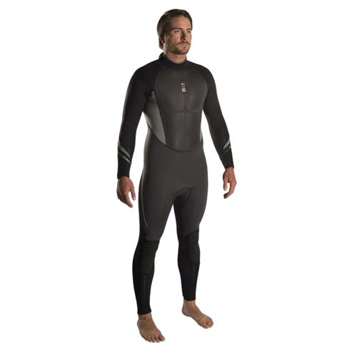 The Fourth Element 5mm Xenos Men's Full Wetsuit fast transition wetsuit. The design criteria of this suit were to make it as easy as possible to get on and off thanks to cut away ankles (inspired by the fast transition features of triathlon suits) and smooth linings in the arms and legs. The perfect wetsuit for liveaboard dive vacations or multiple dives per day. Designed to be easy to get on and off, the Xenos wetsuit dries quickly between dives and is surprisingly warm thanks to blind-stitched seams and Thermoflex linings on the body core. Designed specifically with multiple dives per day usage such as live-aboard diving in mind. Donning the suit is easy thanks to low friction fast drying linings on arms and legs. Layer with a Thermocline vest for a little extra protection on the last dive of the day!