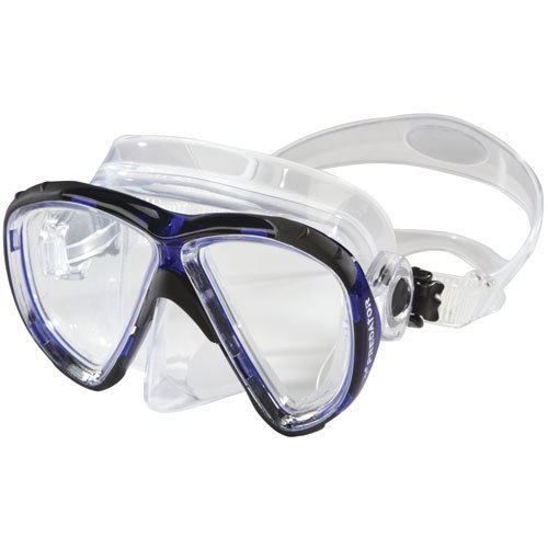 The Predator Mask is equipped with easily adjusted ratcheted buckles. As with any quality mask it is constructed with dual tempered safety glass lenses, and easy-access nose pocket for single handed equalization, that can be utilized even when wearing thick gloves. The wide split strap works in concert with the double feathered edge skirt and keeps the water out for hours of comfortable use. Mask comes with a clear plastic mask box for added protection when in storage. The Predator is available in multiple colors.
