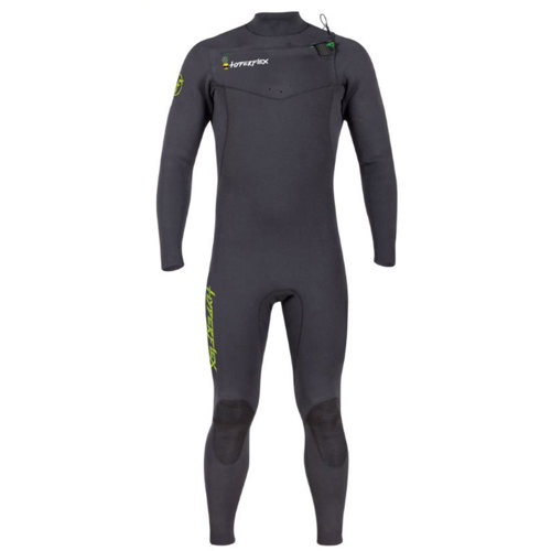 Hyperflex Ben Gravy Edition Greenprene 3/2mm Chest Zip Full Wetsuit has a cross chest zipper closure for easy self-donning and doffing. The entire Greenprenewetsuit program has been designed to provide a fully sustainable product lifecycle. Greenprenewetsuits are packaged and shipped in recycled cardboard boxes. Each wetsuit is hand wrapped with recycled paper. Recycled cardboard cores are used to help prevent compression marks from folding and when in storage. All hangtags on the wetsuits are printed on recycled paper using soy-based inks. Suit is black in color with reinforced knees and available in multiples sizes.
