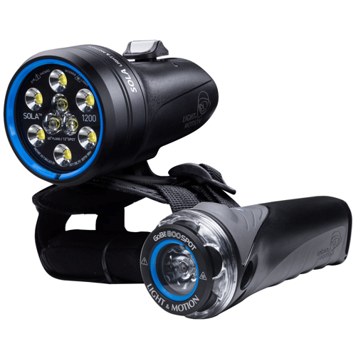 The Light & Motion Sola Dive 1200 S/F produces broad 60-degree flood beams and focused 12-degree spot beams.
