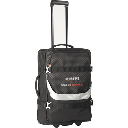 The Mares Cruise Captain Bag is the ideal wheeled bag for divers who travel. It is great to use as a carry-on and will fit in many airline cabin overhead bins. Air Travel Optimized (ATO) design. The Cruise Captain is extremely lightweight weighing only 6.2 lbs. (2.8 kg) and measures 14" x 8.5" x 22 (36cm x 22cm x 55cm) with a volume of 2,563 cubic inches (42 liters). The bag is made from PVC free Cordura nylon for strength and durability. The telescoping handle and sturdy wheels make it very convenient for travel when maneuvering through busy airline, train or bus terminals. The expandable main compartment and pocket with zipper closures offers plenty of room to conveniently stow diving equipment.