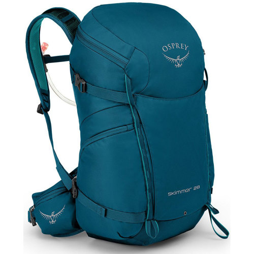 The Skimmer 28 is a lightweight and durable women's-specific pack capable of handling any adventure around town, on the trails, and beyond. The included 2.5-liter (84.5 fl. oz.) reservoir holds plenty of water for all-day hydration, mesh side pockets keep snacks and other small items conveniently close by, and the front panel pocket is the perfect spot to store your raincoat. Compression straps pull everything in tight, lower loops secure your trekking poles, and there's even an ice axe loop if things get vertical. With a timeless rucksack design and user-friendly packing solution, the Skimmer is the ultimate town-to-trail companion.