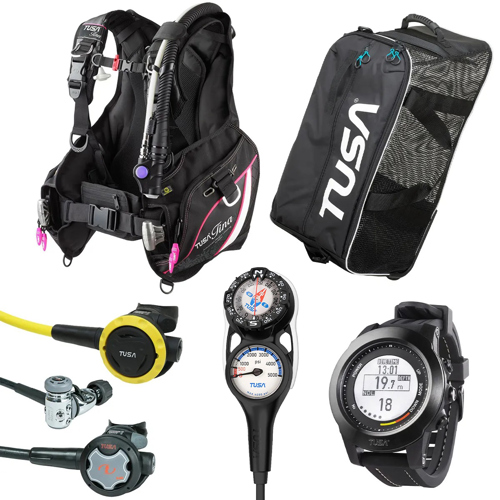 BCD is made from durable 500-Cordura nylon with an internal urethane laminated air cell.Torso adjustable shoulder and sternum straps provide excellent comfort and adjustable waist strap with cummerbund provides precise adjustment of harness. All straps are equipped with "squeeze-style" side-release buckles for easy donning and doffing. Sternum strap also comes with a handy built-in signaling whistle. Buoyancy is controlled by TUSA's patented O.P.E.V. Quick inflate/Deflate System. Trimming buoyancy is easy with 2-dump/overpressure relief valves. BCD provides 21.4 lbs to 32.6 lbs (9.7 kg to 14.8kg) of lift and has a dry weight of 6.1 lbs to 7.1 lbs (3.1 to 3.4kg) depending on the BCD size. The TUSA Tina BC comes with a 3/8" threaded inflator hose and an owner's manual.