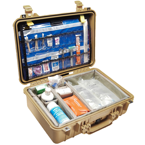 This makes the perfect first aid kit that can and should be brought everywhere. The dividers hold everything well and can be adjusted to exactly how you like it. Fully waterproof, virtually indestructible, and portable.