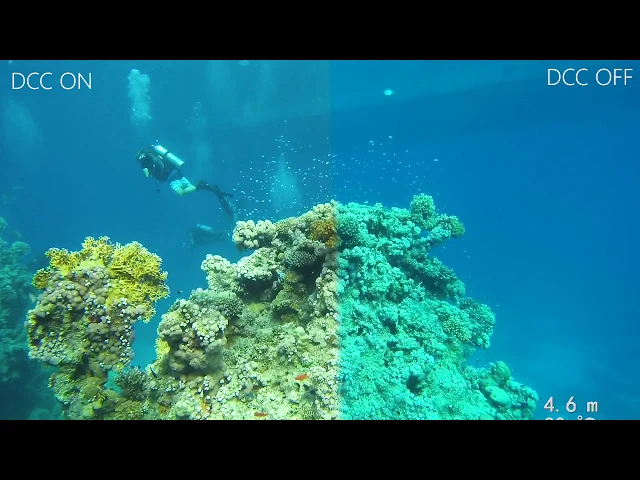 Very clear picture in the water, DCC is ahead of its time, no fog ups. Battery charge takes a long time. Photos are as good as a go pro underwater, but underwater videos are much better.