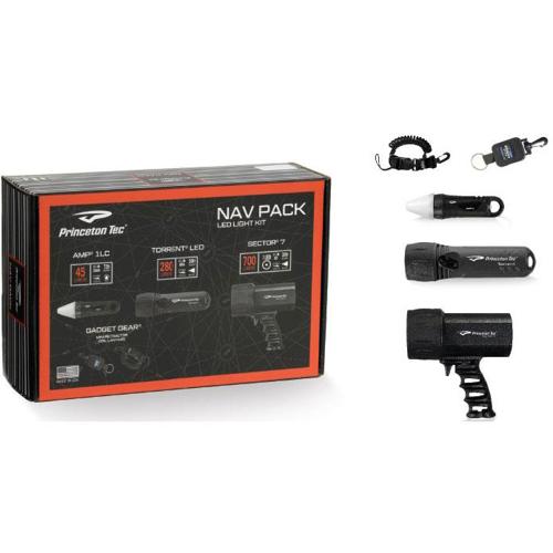 NAV Pack is Princeton Tec's no compromises light pack with the brightest dive lights they have to offer, plus two handy pieces of Gadget Gear. The Princeton Tec Sector 7 pistol grip spotlight packs 700 lumens of brightness. The light is powered by eight C-cell alkaline batteries (included) while providing 30-hours of total burn time with a 4-hour regulated medium beam with over 689' (210 meter) of visible distance on land. The trigger switch is easy-to-use with gloved hands; access momentary on via a half pull of trigger and constant on via full pull of trigger. The switch locks-out to prevent accidental illumination and battery drain while in transit or storage.