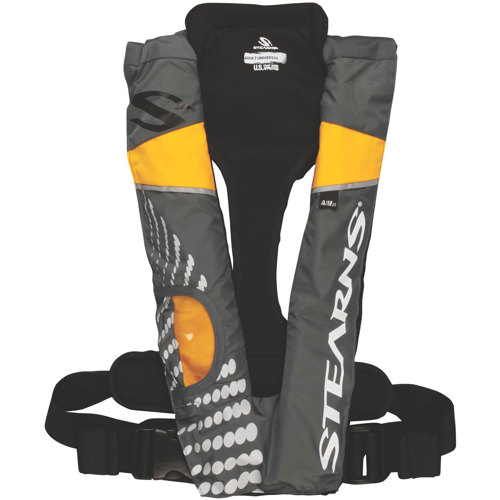 Enjoy comfort, safety and freedom when you buckle into a Stearns Boating Side Closure Series Vest. It's perfect for boaters, paddlers, anglers and hunters who get distracted by traditional PFDs. Just slip it on and buckle it on the side, and if danger is near, either pull the activation cord for automatic inflation within seconds or inflate it yourself. The vest is also reusable using Rearm Kit #0924. US Coast Guard-approved, with neoprene collar for added comfort. Streamlined design stays out of the way. Inflates to a full Type II PFD, inflates automatically or manually and has an arming window. This high visibility lightweight and comfortable PFD can be worn over a T-shirt on warm days or over thicker garments in colder conditions. PFD has a status indicator window; the inflation CO2 cylinder is contained inside the bladder to protect against corrosion and the device is made from durable shell fabric with an inner bladder with radio frequency (RF) welded seams. The vest comes with a sturdy and comfortable harness assembly consisting of a back webbing with waist strap equipped with a side squeeze-style side-release adjustable buckle. Vest is available in multiple colors and comes with an owner's manual. Vest provides 33.7 lbs. (15.29 kg) of buoyancy.