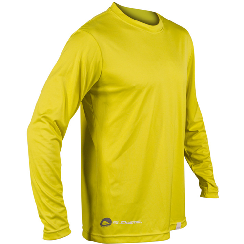 SUPreme UV Shield water tee shirts are an updated version of a traditional Lycra rash guard. Rather than a tight stretch fit, these tops fit and feel like a comfortable tee shirt. The 50+ UV Shield helps protect you from sun exposure when spending long hours on the water. They are great for wearing on the board, beach or in water. Instead of cotton, these tops are made from a wicking synthetic fabric which is made from recycled plastic bottles. Water shirts dry quickly and transport moisture away from your body, keeping you cool and dry even on hot and humid days. The seam of the Rash Guard are flat-locked stitched for non-chaffing comfort and durability. SUPreme Water Shirts are available in multiple sizes and colors.
