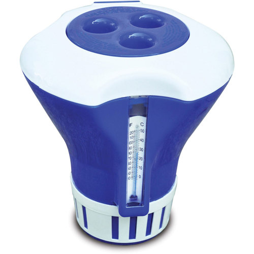 Keeping the backyard pool properly treated and at just the right temperature takes the right pool tools, Swimline has everything you need from gear to clean and maintain the water quality and keep it at a comfortable temperature. This durable plastic floating Thermo Chemical Dispenser is the perfect pool companion that will disperses from 1 to 3 chlorine tables and is equipped with a thermometer. Temperature gradient in Fahrenheit and Celsius for easy temperature readings.