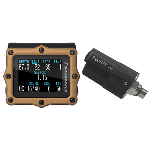 Every Shearwater air integrated dive computer can lock in your dive site location coordinates with the Swift GPS. Get more than the benefits of air integration when you capture your dive's entry and exit points, and add maps to your Dive Shearwater log.