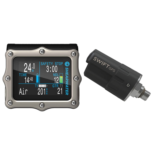 Every Shearwater air integrated dive computer can lock in your dive site location coordinates with the Swift GPS. Get more than the benefits of air integration when you capture your dive's entry and exit points, and add maps to your Dive Shearwater log.