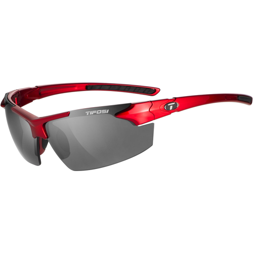 The Jet FC Sunglasses come with Matte Gunmetal Frames with Smoke Bright Blue Lenses or Metallic Red Frames with Smoke Lenses. Smoke Lenses when the sun is high and the sky's deep-blue, Smoke Lenses show the least amount of color distortion and are perfect for use in full sun conditions. The Lore Sunglasses Frame is made of Grilamid TR-90, a homo-polyamide nylon characterized by an extremely high alternative bending strength, low density, and high resistance to chemical and UV damage. The Jet FC has hydrophilic rubber ear and nose pieces for a no-slip fit. The sunglasses weigh 1.0 oz. (29 g). The Jet FC has hydrophilic rubber ear and nose pieces for a no-slip fit. The Tifosi Jet FC Sunglasses fit small, medium to large faces come with a storage bag.